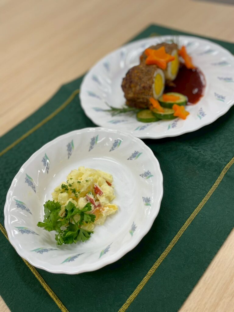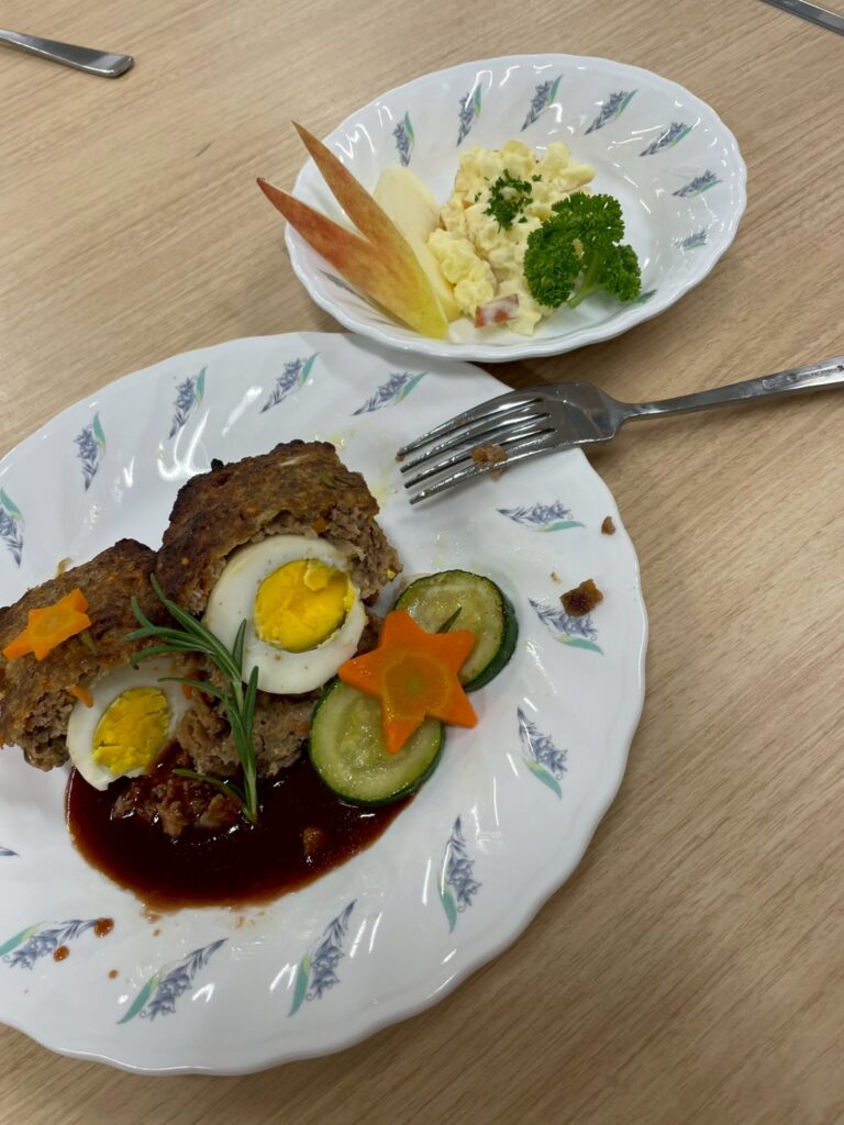 皆んな大好きなミートローフをクリスマス仕様にデコレーションしました。