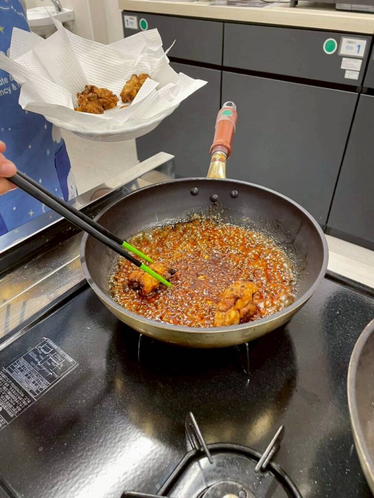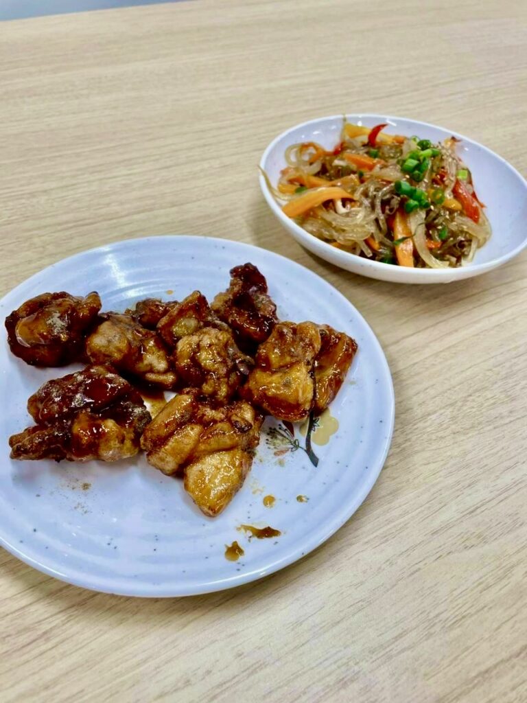 11月最後のプチシェフのレッスンは、韓国料理の人気メニュータッカンジョン(韓国風鶏の唐揚げ) と チャプチェ を作りました🇰🇷✨