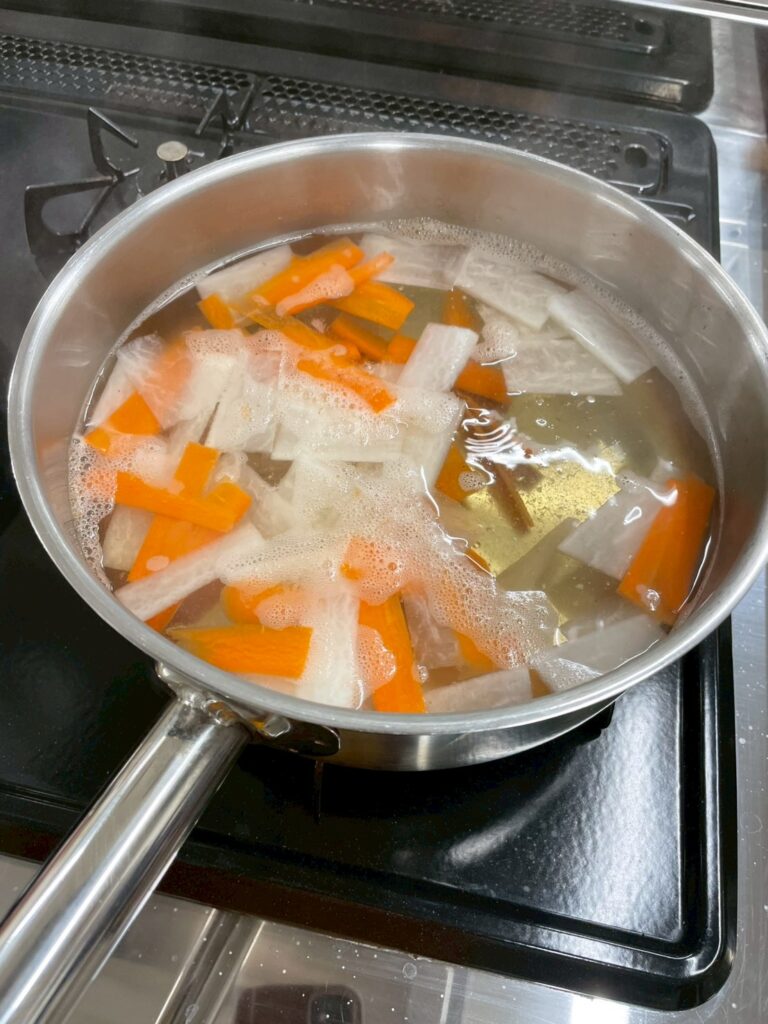 巻き寿司の中に、かわいらしい花模様を作ります。