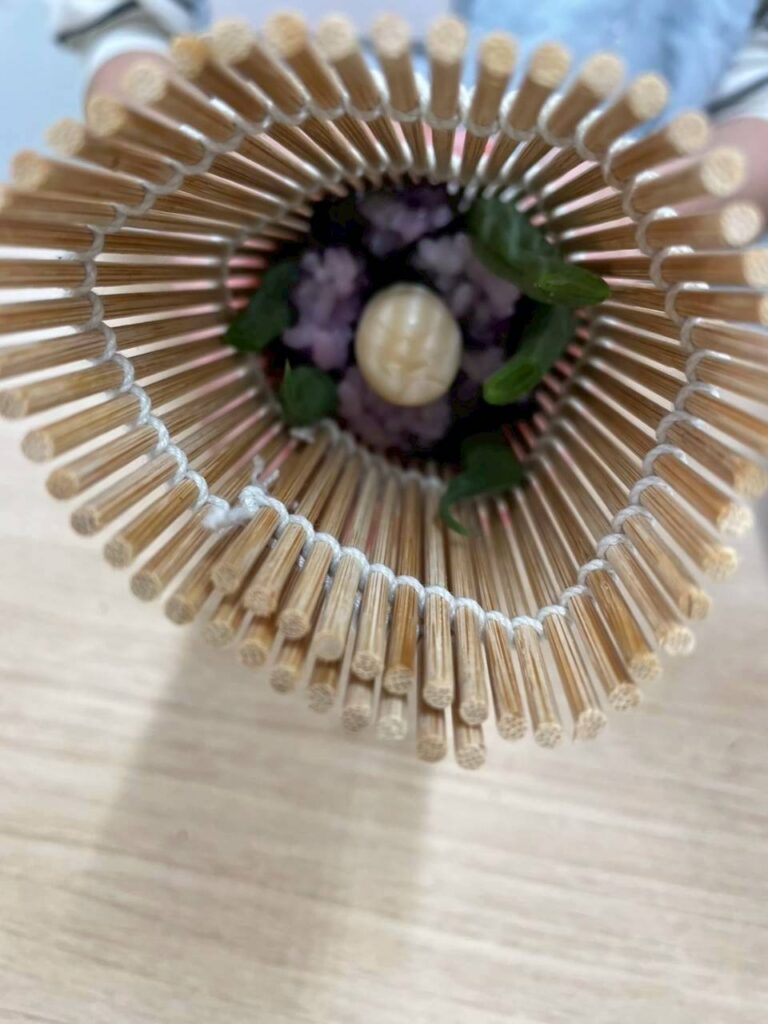 細く巻いた小さな巻き寿司を組み合わせて、お花の形に仕上げていく少し特別な工程です。